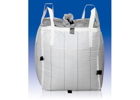 导电集装袋是在袋子上加入导电丝,这种集装袋的外形及其他参数跟普通的集装袋是一样的,唯一不同的是在集装袋的袋身,吊带,装卸口和锁边均有导电丝,导电丝与导电膜接触,其袋身的导电丝间距,<5cm,其袋身的缝合处还可附加带有防漏的缝合线,袋身内表面还可有防漏层。